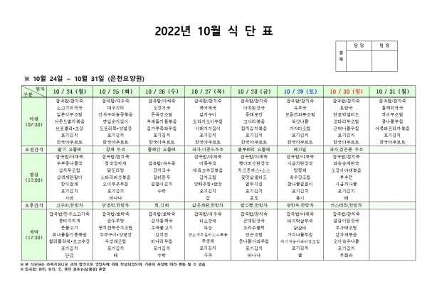 10월 넷째주 식단표 페이지 정보 작성자 은천노인복지회 작성일22-10-20 15:06 조회94,379회 댓글0건 관련링크 이전글 다음글 목록 답변 본문 . 이전글 다음글 목록 답변