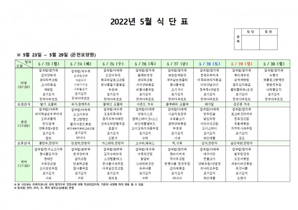 5월 넷째주 식단표 페이지 정보 작성자 은천노인복지회 작성일22-05-19 16:56 조회106,165회 댓글0건 관련링크 이전글 다음글 목록 답변 본문 . 이전글 다음글 목록 답변
