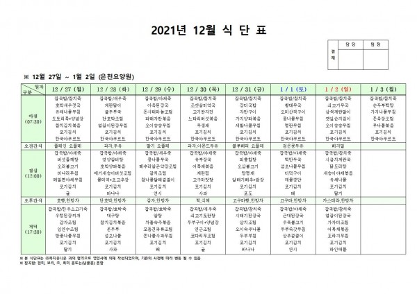 12월 다섯째주 식단표 페이지 정보 작성자 은천노인복지회 작성일21-12-23 17:14 조회123,094회 댓글0건 관련링크 이전글 다음글 목록 답변 본문 . 이전글 다음글 목록 답변