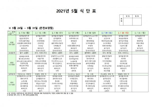 5월 넷째 주 식단표 페이지 정보 작성자 은천노인복지회 작성일21-05-21 16:38 조회136,196회 댓글0건 관련링크 이전글 다음글 목록 답변 본문 5월 넷째 주 식단표 이전글 다음글 목록 답변
