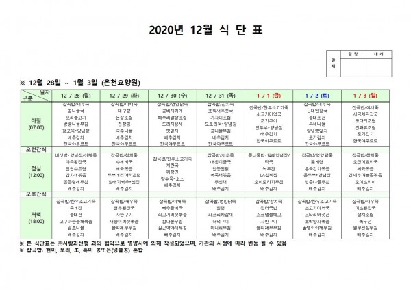 12월 다섯째주 식단표 페이지 정보 작성자 은천노인복지회 작성일20-12-24 18:17 조회150,113회 댓글0건 관련링크 이전글 다음글 목록 답변 본문 . 이전글 다음글 목록 답변