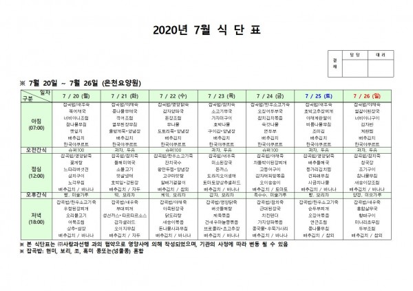 7월 넷째주 식단표 페이지 정보 작성자 은천노인복지회 작성일20-08-10 11:31 조회166,482회 댓글0건 관련링크 이전글 다음글 목록 답변 본문 . 이전글 다음글 목록 답변