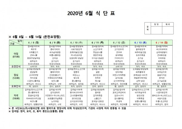 6월 둘째주 식단표 페이지 정보 작성자 은천노인복지회 작성일20-06-15 12:49 조회170,528회 댓글0건 관련링크 이전글 다음글 목록 답변 본문 ㅣ; 이전글 다음글 목록 답변