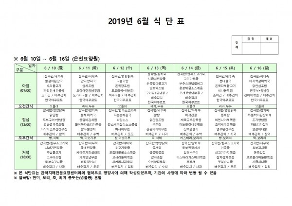 6월 둘째주 식단표 페이지 정보 작성자 은천노인복지회 작성일19-06-17 13:13 조회202,122회 댓글0건 관련링크 이전글 다음글 목록 답변 본문 6월 둘째주 식단표 이전글 다음글 목록 답변