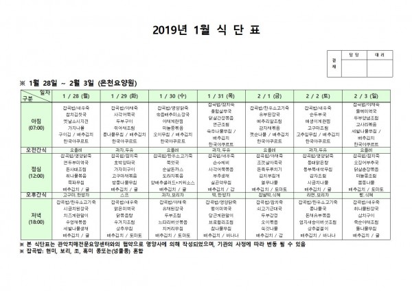 1월 넷째주 식단표 페이지 정보 작성자 은천노인복지회 작성일19-02-13 17:29 조회208,162회 댓글0건 관련링크 이전글 다음글 목록 답변 본문 1월 넷째주 식단표 이전글 다음글 목록 답변