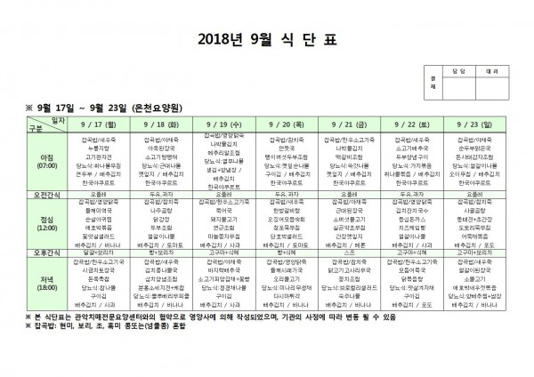 9월 셋째주 식단표 페이지 정보 작성자 은천노인복지회 작성일18-10-08 11:05 조회206,309회 댓글0건 관련링크 이전글 다음글 목록 답변 본문 9월 셋째주 식단표 이전글 다음글 목록 답변