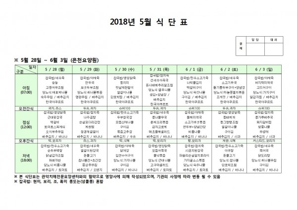 5월 다섯째주 식단표 페이지 정보 작성자 은천노인복지회 작성일18-06-07 10:39 조회207,952회 댓글0건 관련링크 이전글 다음글 목록 답변 본문 5월 다섯쨰주 식단표 이전글 다음글 목록 답변