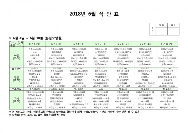 6월 둘째주 식단표 페이지 정보 작성자 은천노인복지회 작성일18-06-11 14:23 조회208,258회 댓글0건 관련링크 이전글 다음글 목록 답변 본문 6월 둘째주 식단표 이전글 다음글 목록 답변