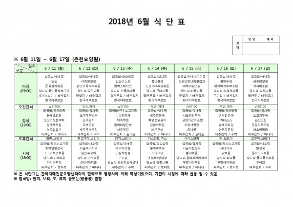 6월 셋째주 식단표 페이지 정보 작성자 은천노인복지회 작성일18-06-18 10:47 조회209,517회 댓글0건 관련링크 이전글 다음글 목록 답변 본문 6월 셋째주 식단표 이전글 다음글 목록 답변