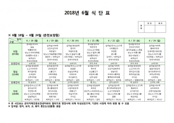 6월 넷째주 식단표 페이지 정보 작성자 은천노인복지회 작성일18-06-25 11:11 조회210,910회 댓글0건 관련링크 이전글 다음글 목록 답변 본문 6월 넷째주 식단표 이전글 다음글 목록 답변