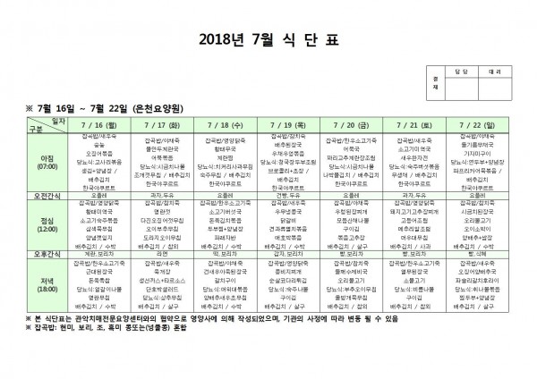 7월 셋째주 식단표 페이지 정보 작성자 은천노인복지회 작성일18-07-23 11:24 조회209,294회 댓글0건 관련링크 이전글 다음글 목록 답변 본문 7월 셋째주 식단표 이전글 다음글 목록 답변