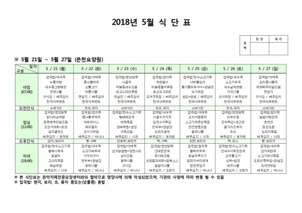 5월 넷째주 식단표 페이지 정보 작성자 은천노인복지회 작성일18-06-07 10:39 조회209,246회 댓글0건 관련링크 이전글 다음글 목록 답변 본문 5월 넷째주 식단표 이전글 다음글 목록 답변