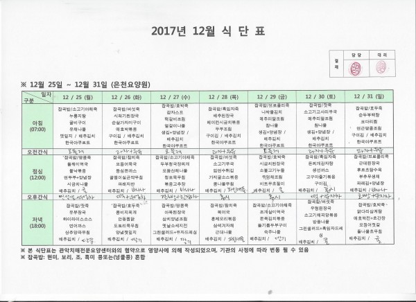 12월 다섯째주 식단표 페이지 정보 작성자 은천노인복지회 작성일17-12-26 11:49 조회193,141회 댓글0건 관련링크 이전글 다음글 목록 답변 본문 12월 다섯째주 식단표 이전글 다음글 목록 답변
