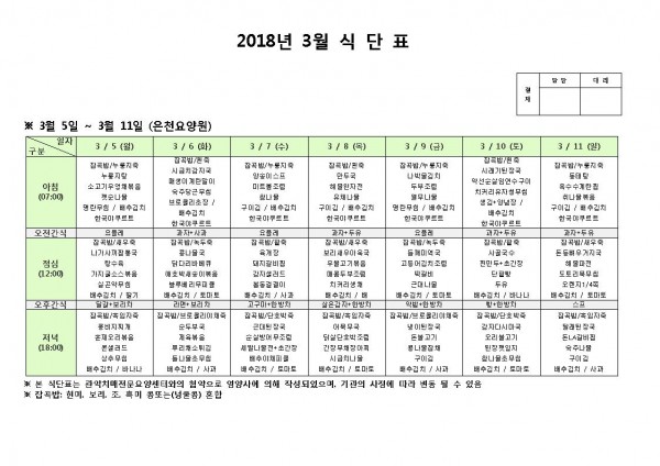 3월 둘째주 식단표 페이지 정보 작성자 은천노인복지회 작성일18-03-05 16:27 조회197,603회 댓글0건 관련링크 이전글 다음글 목록 답변 본문 3월 둘째주 식단표 이전글 다음글 목록 답변