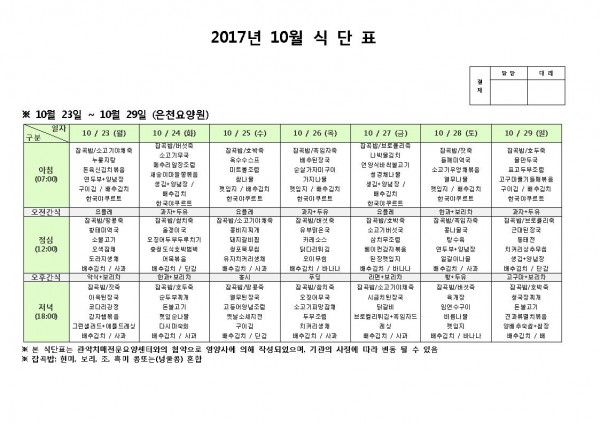 10월 넷째주 식단표 페이지 정보 작성자 은천노인복지회 작성일17-10-23 11:19 조회186,931회 댓글0건 관련링크 이전글 다음글 목록 답변 본문 10월 넷째주 식단표 이전글 다음글 목록 답변