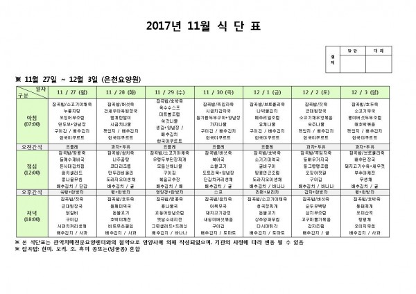 12월 첫째주 식단표 페이지 정보 작성자 은천노인복지회 작성일17-11-27 14:34 조회189,576회 댓글0건 관련링크 이전글 다음글 목록 답변 본문 12월 첫째주 식단표 이전글 다음글 목록 답변