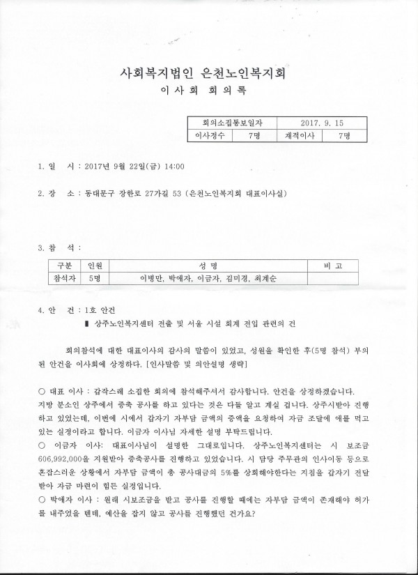 이사회의록 공개 페이지 정보 작성자 은천노인복지회 작성일17-10-16 14:27 조회36,990회 댓글0건 관련링크 목록 본문 9월 22일 상주노인복지센터 전출의 건 이사회의록을 공개합니다. 목록