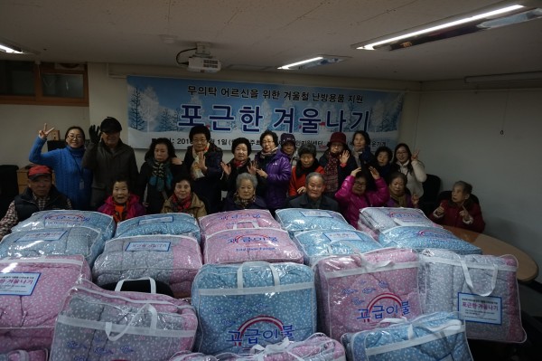 아름다운가게 이불후원 페이지 정보 작성자 은천노인복지회 작성일17-01-13 17:48 조회38,303회 댓글0건 관련링크 이전글 다음글 목록 답변 본문 아름다운가게 후원으로 이불을 어르신들께 전달하여 드렸습니다. 이전글 다음글 목록 답변