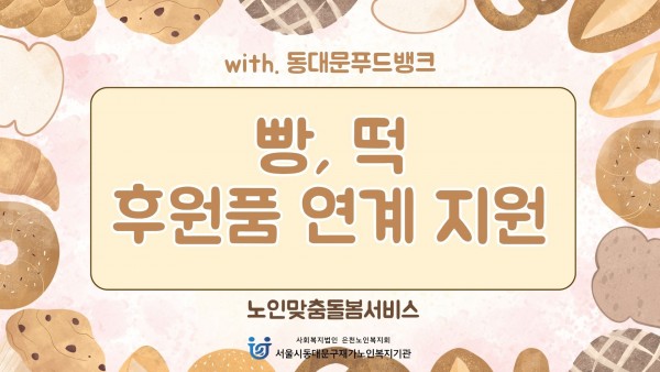 [노인맞춤돌봄서비스] 2026년 1~3월 후원품 연계 지원 페이지 정보 작성자 은천노인복지회 작성일26-04-09 16:17 조회5회 댓글0건 관련링크 이전글 다음글 목록 답변 본문 '동대문푸드뱅크'로부터 매주 월요일 빵을 후원 받고 있으며, 생원지원사를 통해 어르신들께 빵을 전달해드리고 있습니다. 이전글 다음글 목록 답변