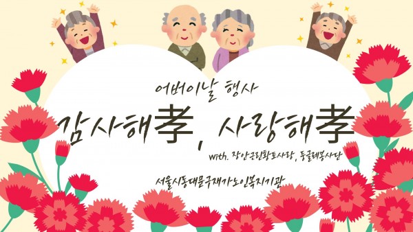 [서울시동대문구재가노인복지기관] 어버이날 기념 '감사해孝, 사랑해孝' 페이지 정보 작성자 은천노인복지회 작성일25-05-14 15:07 조회4,098회 댓글0건 관련링크 이전글 다음글 목록 답변 본문 2025년 5월 어버이날 기념으로 선물과 간식을 전달해드리며 행사를 진행하였습니다. 이전글 다음글 목록 답변