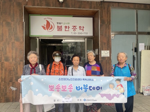 [재가노인서비스] 목욕지원사업 '뽀송뽀송 버블데이' 페이지 정보 작성자 은천노인복지회 작성일23-07-12 16:12 조회10,932회 댓글0건 관련링크 이전글 다음글 목록 답변 본문 장안동에 위치한 목욕탕에서 어르신들을 모시고 목욕서비스를 지원하였습니다. 이전글 다음글 목록 답변