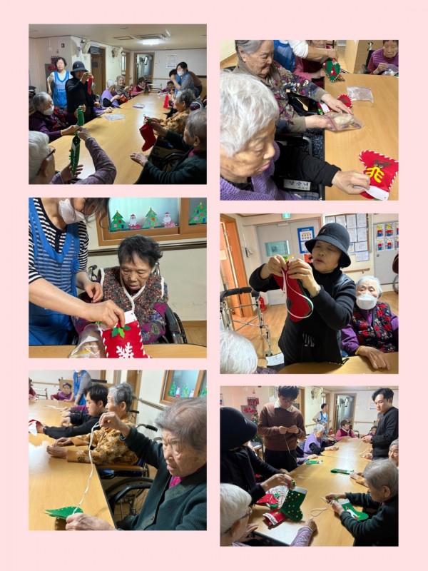 12월 19일 미술치료 프로그램 페이지 정보 작성자 은천노인복지회 작성일24-12-19 14:57 조회5,186회 댓글0건 관련링크 이전글 다음글 목록 답변 본문 바느질하여 산타양말 만들기♥ 이전글 다음글 목록 답변